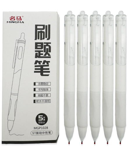 Ручки гелевые набор- 5 шт. DG-121 "Белые" автоматические (черный) 0,5мм, круглый корпус с грипом, в к/кор MGP1028 (1/320)