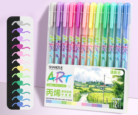 Ручки акриловые набор- 12цв. DG-17 "Bright color" 1,0мм, прозрачный корпус с рисунком, в уп ПВХ S358C-12 (1/12/144)