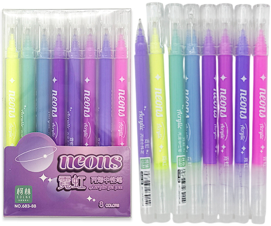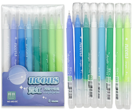Ручки акриловые набор - 8 цв. DI-251 "Neons" 0,7мм, прозрачный круглый корпус, в уп ПВХ №683-8B (1/10/160)