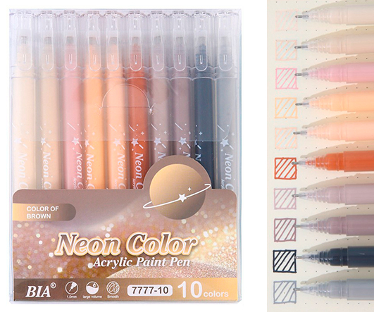 В наборе ручки 10 цветов серии "Neon Color". Цветные акриловые ручки используются для выделения в тексте заголовков, определений и других элементов, на которые необходимо обратить внимание. Ручки можно использовать не только для выделения текста, но и рис