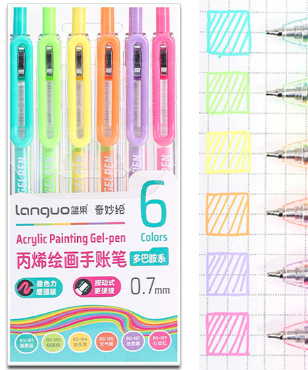 В наборе ручки 6 цветов. Цветные гелевые ручки используются для выделения в тексте заголовков, определений и других элементов, на которые необходимо обратить внимание. С помощью этих ручек создаются декоративные надписи или рисунки.