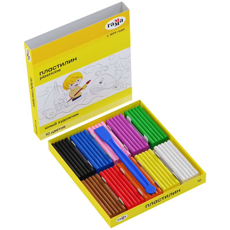 Пластилин 10 цв. ГАММА "Юный Художник" со стеком, картон 140 гр. 280044 (6/20)