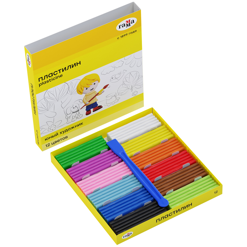 Пластилин 12 цв. ГАММА "Юный художник" со стеком, картон 168 гр. 280045 (2/16)