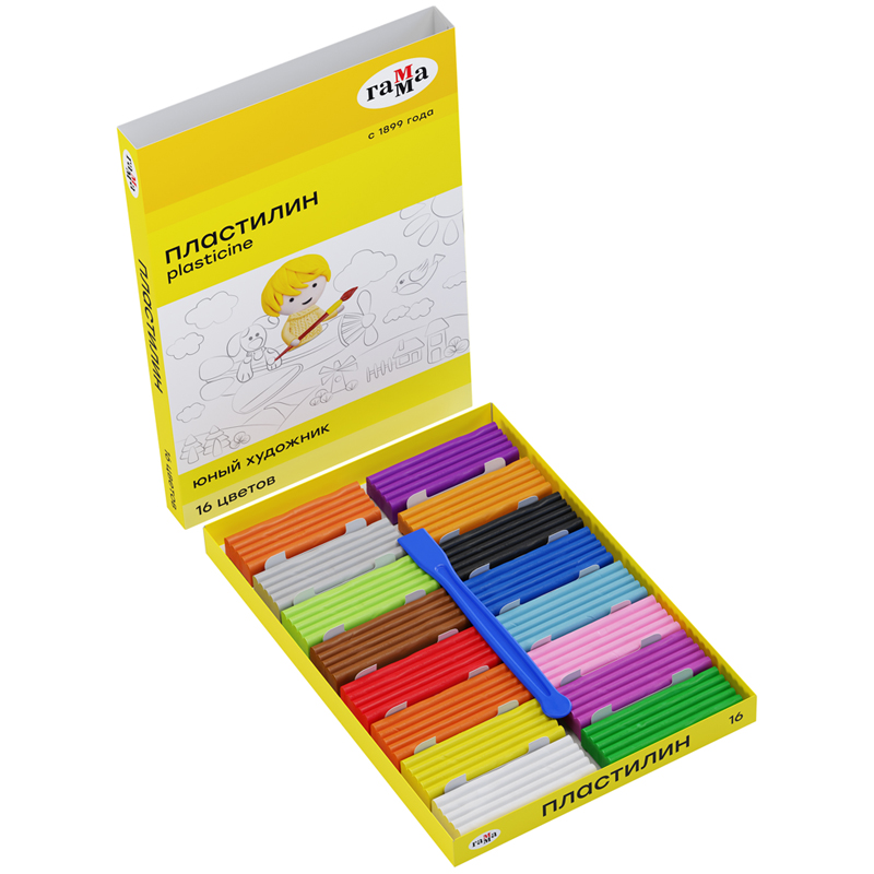Пластилин 16 цв. ГАММА "Юный художник" со стеком, картон 224 гр. 280046 (2/10)