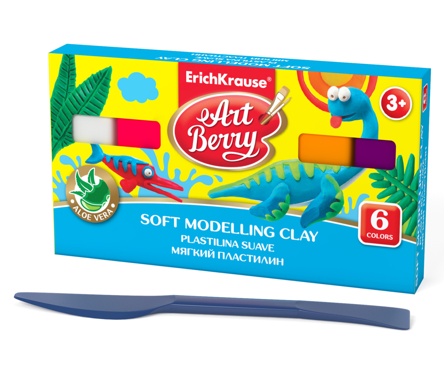Пластилин 6 цв. Er.Krause мягкий «ArtBerry» с Алоэ Вера со стеком, в к/кор 120гр 41780 (4/8/48)