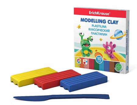 Пластилин 10 цв. Er.Krause Классический "Monsters" со стеком, 150гр 50553 в к/кор (2/7/28)