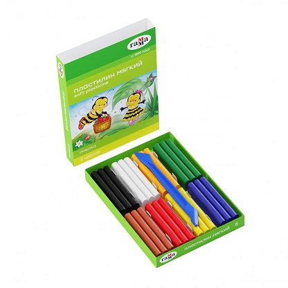 Пластилин 8 цв. ГАММА "Пчелка" восковой, со стеком к/к 120гр. 280038Н (1/23)