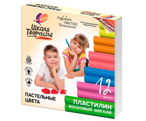 Пластилин 12 цв. Луч "Школа творчества" восковой, пастельные цвета 180гр. 29С 1771-08 (1/20)
