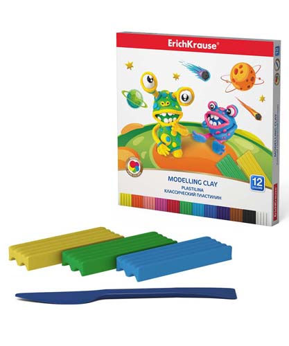 Пластилин 12 цв. Er.Krause Классический "Cosmic Monsters" со стеком, 216гр 58469 (4/16)