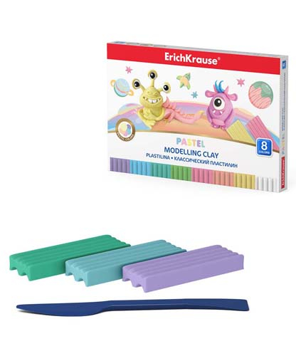 Пластилин 8 цв. Er.Krause Классический "Cosmic Monsters Pastel" со стеком, 144гр 58615 (7/28)