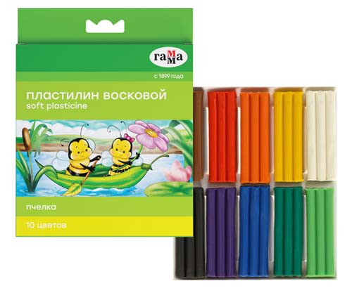 Пластилин 10 цв. ГАММА "Пчелка" восковой, со стеком, картон 150 гр. 280031НЕ (5/42)