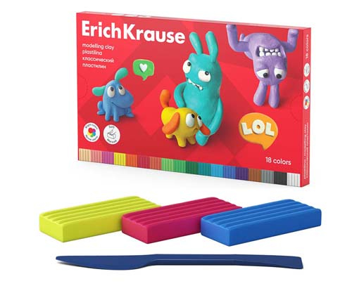 Пластилин 18 цв. Er.Krause Классический "Jolly Friends" со стеком, 324гр 61349 (1/4/16)