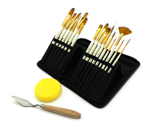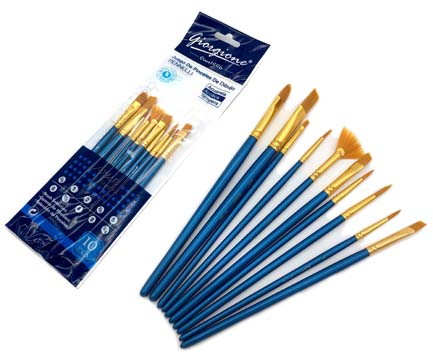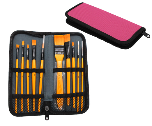 Кисти набор 10 шт. Синтетика AS-22 для акриловых красок, в розовом пенале на молнии, оранжевая ручка (1/120)