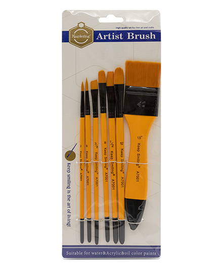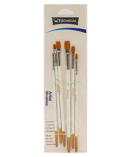 Кисти набор 7 шт. Синтетика DB-150/CJ-166 Круглые (№2, 6) и плоские (№1/2, 3/8, 8, 12, 1.5) оранжевая ручка, на блистере A7001 (1/24/240)