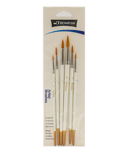 Кисти набор 6 шт. Синтетика CK-156 Круглые (№2, 4, 6, 8, 10, 12) белая ручка, в ПВХ пакете (1/24/240)