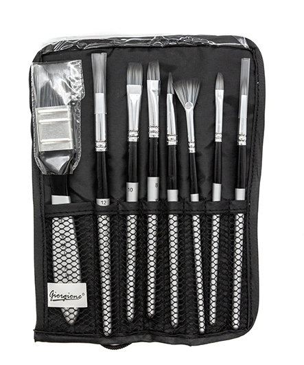 Кисти набор 8 шт. Синтетика DD/107 CK-143 Круглые (№2,12) и плоские (№1/4,4,6,8,10,25) в пенале-скрутке, в пластиковом тубусе №G-30H (1/6/48)