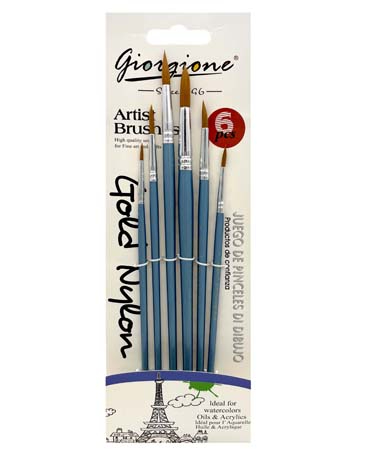 Кисти набор 6 шт. Синтетика WGQR-20 G577-6A Круглые (№2, 4, 6, 8, 10, 12) синяя ручка, в ПВХ пакете (1/60/360)