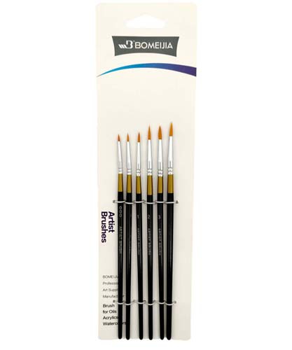 Кисти набор 6 шт. Синтетика DB-153 Круглые (000,0, 1,2,3,4), черная ручка, в ПВХ-пакете (1/24/360)