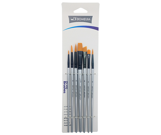 Кисти набор 7 шт. Синтетика DB-154 Круглые (№ 2,4,6,8) плоские (№ 4, 8, 1/2) серебрянная ручка, в ПВХ-пакете (1/12/288)