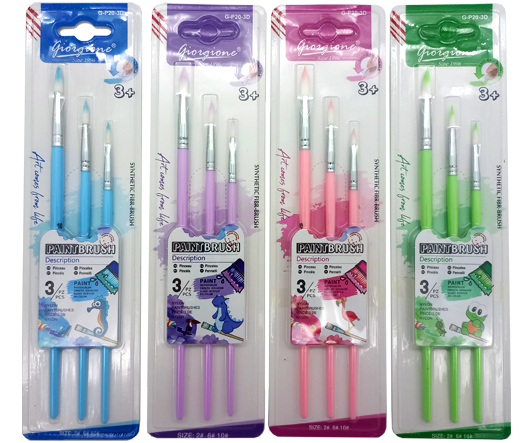 Кисти набор 3 шт. Синтетика DD-105 Круглая № 2, плоские (№ 6, 10) цвета ассорти, в блистере № G-P20-3B (1/24/288)