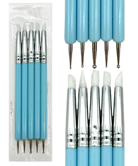 Кисти набор 5 шт. Силикон INTELLIGENT DE-210 Двусторонние (резиновый наконечник + металлический дотс) голубая пластиковая ручка, в ПВХ-пакете (1/500)