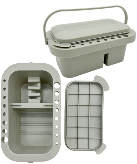 Ведерко для мытья кистей DH-125 "Прямоугольное" пластик, ребристое дно, с ручкой, крышкой, палитрой, держателями для кистей, серый (1/60)