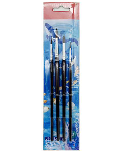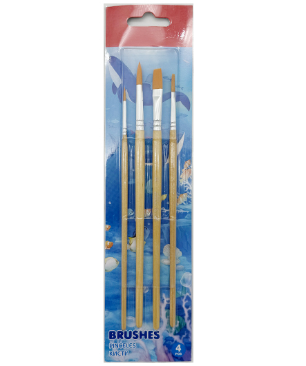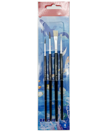 Кисти набор 4 шт. Синтетика DA-30 Круглые (№ 5, 11) и плоские (№ 10, 16), в ПВХ пакете (1/24/360)