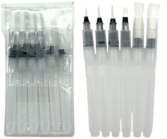 Кисти набор 6 шт. Синтетика DH-122 Круглые (№1, 2, 3) и плоские (№4, 7, 10) с резервуаром для воды, ПВХ (1/14/280)