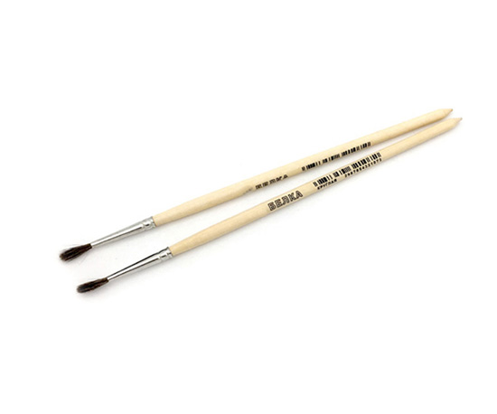Круглая кисть из волоса пони. Хорошо сохраняет форму и отлично удерживает краску. Подходит для работы с акварелью, гуашью, тушью.