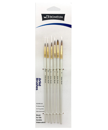 Высококачественная кисть из синтетического волоса. Кисть сохраняет свою упругость при намокании. Отличается долгим сроком службы. Подходит для всех типов красок: акварель, гуашь, масло, акрил. Размер кисти 20см.