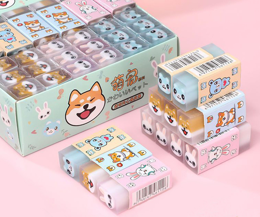 Ластик Er.Krause Cuties прямоугольный с рисунком животных, ассорти, в коробке-дисплее 60770 (32/160)
