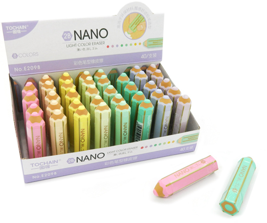 Ластик TOCHAIN CZ-99 "Карандаш NANO" 65*15*15мм шестигранный, цвета ассорти, в к/кор E2098 (36/864)