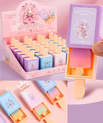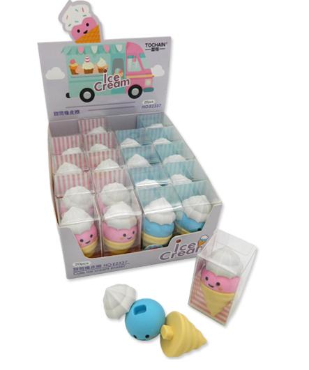 Ластик DE-412 "Мороженное" фигурный корпус 60*30мм, цвета ассорти, в уп ПВХ №E2337 (20/400)