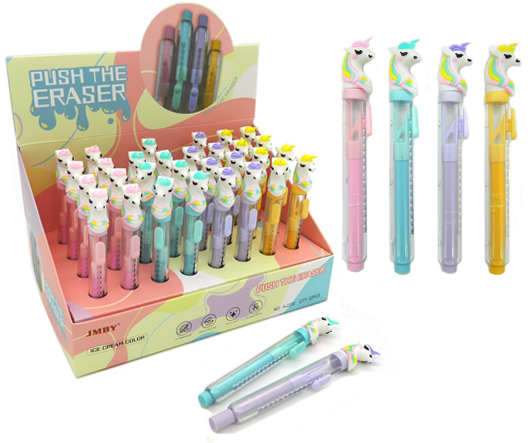 Ластик DA-94 "Единорожка" 110*10мм выдвижной, в футляре, цвета ассорти, в к/кор №A-2330 (32/768)