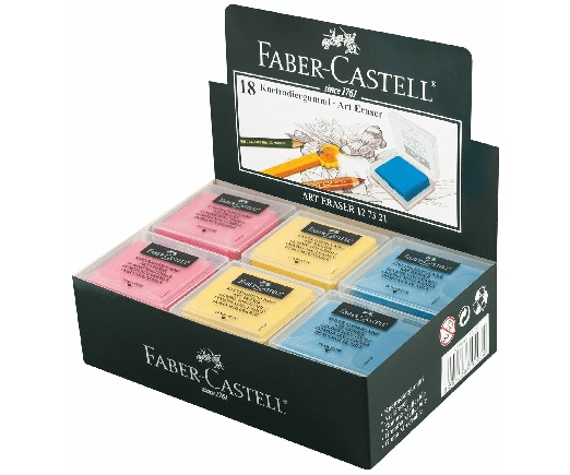 Ластик-клячка Faber-Castell DB-304 35*40мм прямоугольный, в пластиковом футляре, цвета ассорти, в к/кор (18/540)