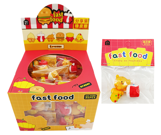 Ластик DB-258 "Фастфуд" 3шт 20*20мм, фигурный, ассорти, в ПВХ упаковке КК-7499 (36/1296)