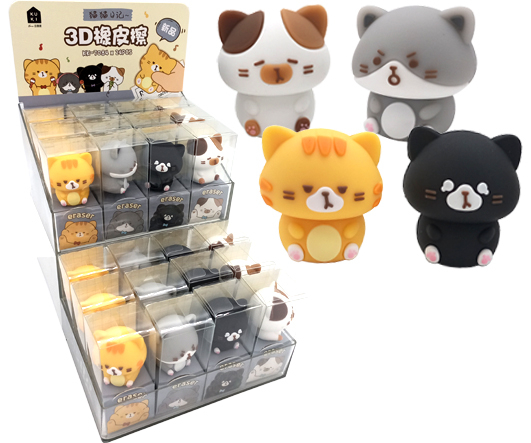 Ластик DE-147/DI-218 "Котики" 40х40мм, фигурный, ассорти, в уп ПВХ с подставкой KK-7084 (24/576)