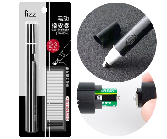 Ластик на батарейках DD-95 Электрический, 20 стержней-ластиков, 18х1,8см, трехгранный черный корпус, блистер FZ669001 (1/12/144)