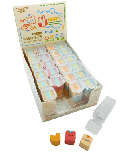 Ластик TOCHAIN CZ-361 "Мини" 3 ШТУКИ в футляре, 15*15*15мм, фигурный, цвета ассорти, в к/кор E2212 (24/720)