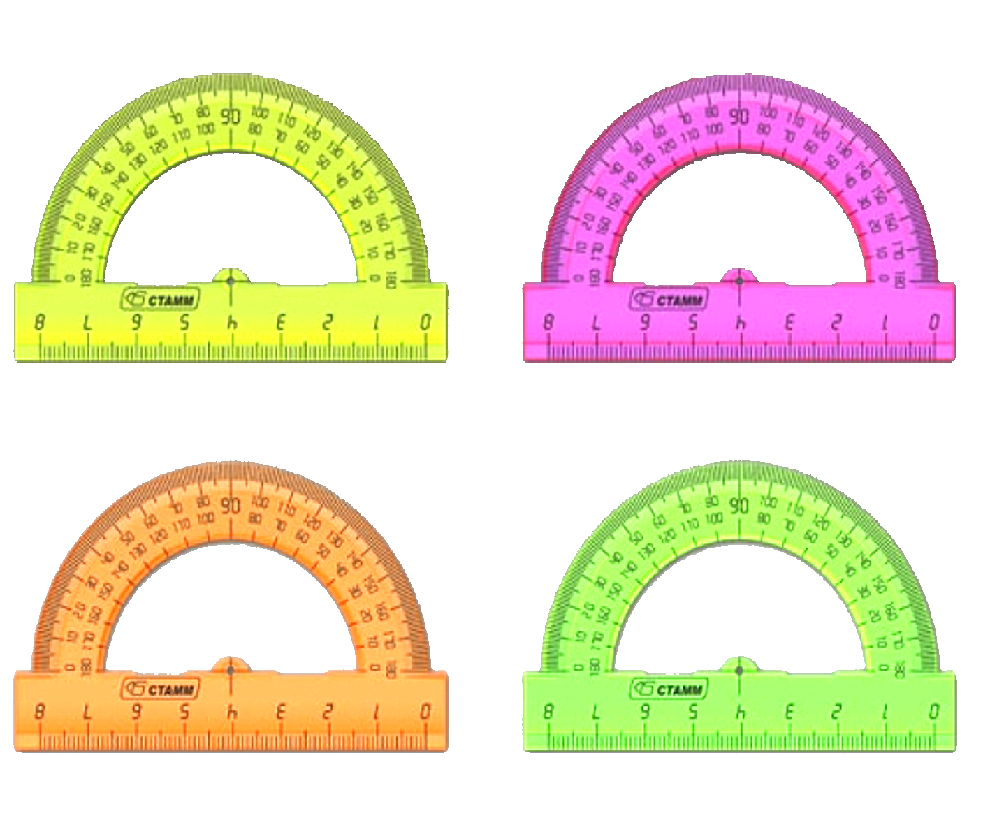 Транспортир 180 гр.10см. ТР11 NEON Cristal 4 цвета СТАММ (20/480)