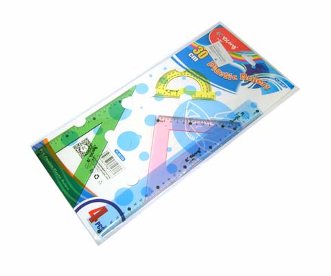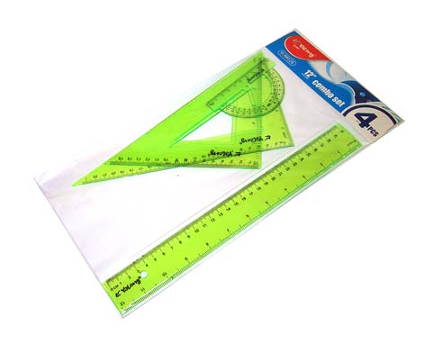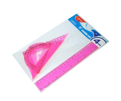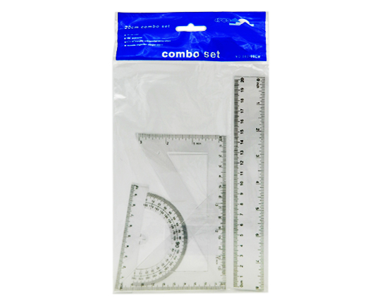Линейки набор CP-134 пластиковые (линейка 20см, транспортир, 2 угольника 10см, 13см) в ПВХ пакете (1/24/576)