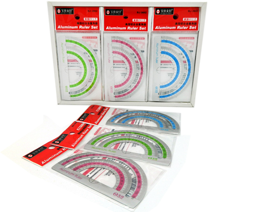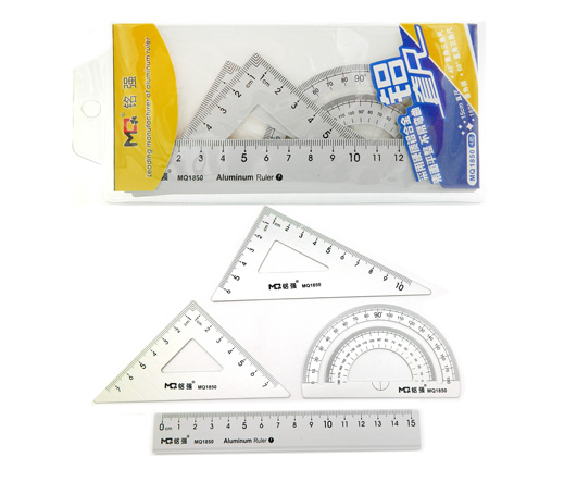 Линейки набор CO-6/CH-8 алюминиевые (линейка 15см, транспортир, 2 угольника) в чехле ПВХ на кнопке MQ1850 (2/36/432)