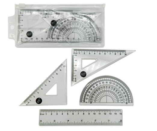 Линейки набор CP-136 пластиковые (линейка 15см, транспортир, 2 угольника 10см) в чехле ПВХ на молнии (1/60/480)