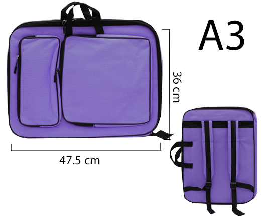 Сумка для творчества 36*47.5см DG-84/SQ-11 "Фиолетовая" А3, текстиль, 2 наружных кармана, на молнии, 2 вида ручек (1/60)
