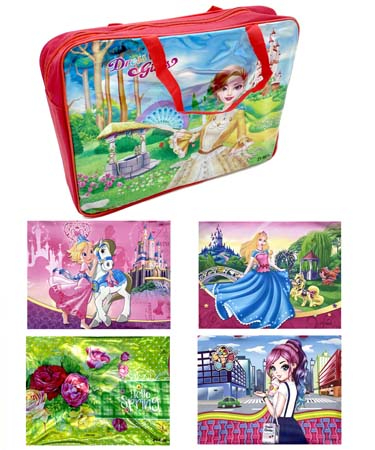 Папка для творчества А4 с ткан. ручками CJ-8101 "Luxcar" пластиковая, молния сверху, черная с рисунком (1/120/240)