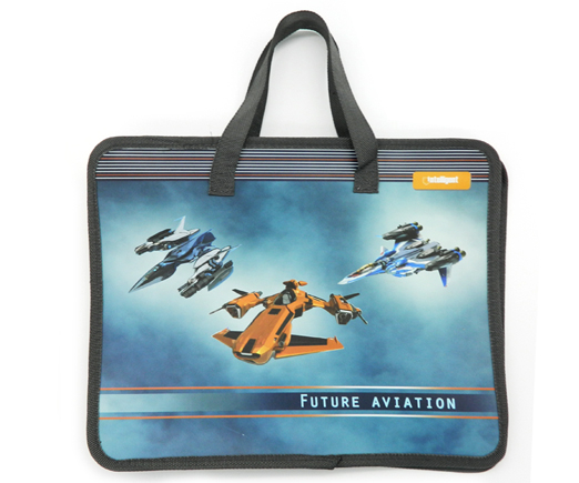 Папка для творчества А4 с ткан. ручками CJ-8350 "Авиация" пластиковая, молния сверху, серая с рисунком (1/120/240)