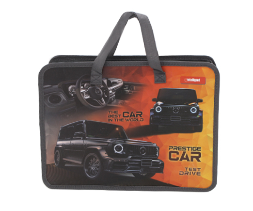Папка для творчества А4 с ткан. ручками CQ-7605 "Внедорожник" пластиковая, молния сверху, серая с рисунком (1/120/240)
