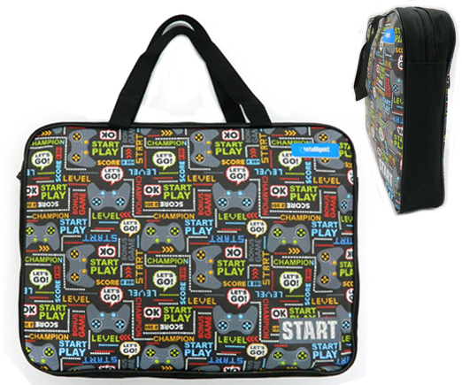 Папка для творчества А4 с ткан. ручками CP-9653 "Game" ПВХ, молния сверху, внутренний карман, черная с рисунком (1/100)