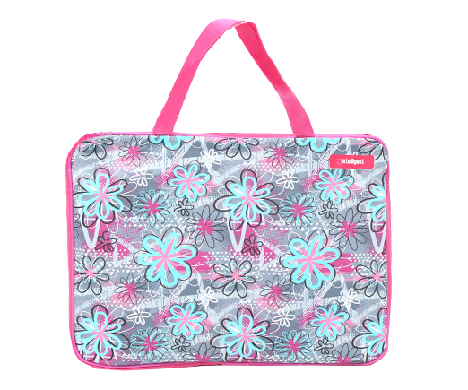 Папка для творчества А4 с ткан. ручками CP-9654 "Цветы на сером" ПВХ, молния сверху, внутренний карман, розовая с рисунком (1/100)