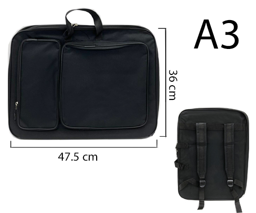 Сумка для творчества 48*65см DA-72 "Черная" А2, текстиль, 3 наружных кармана, на молнии, 2 вида ручек (1/50)